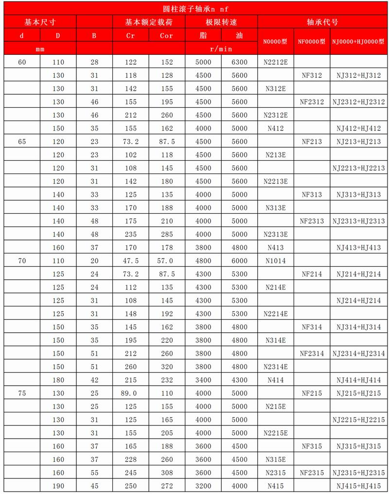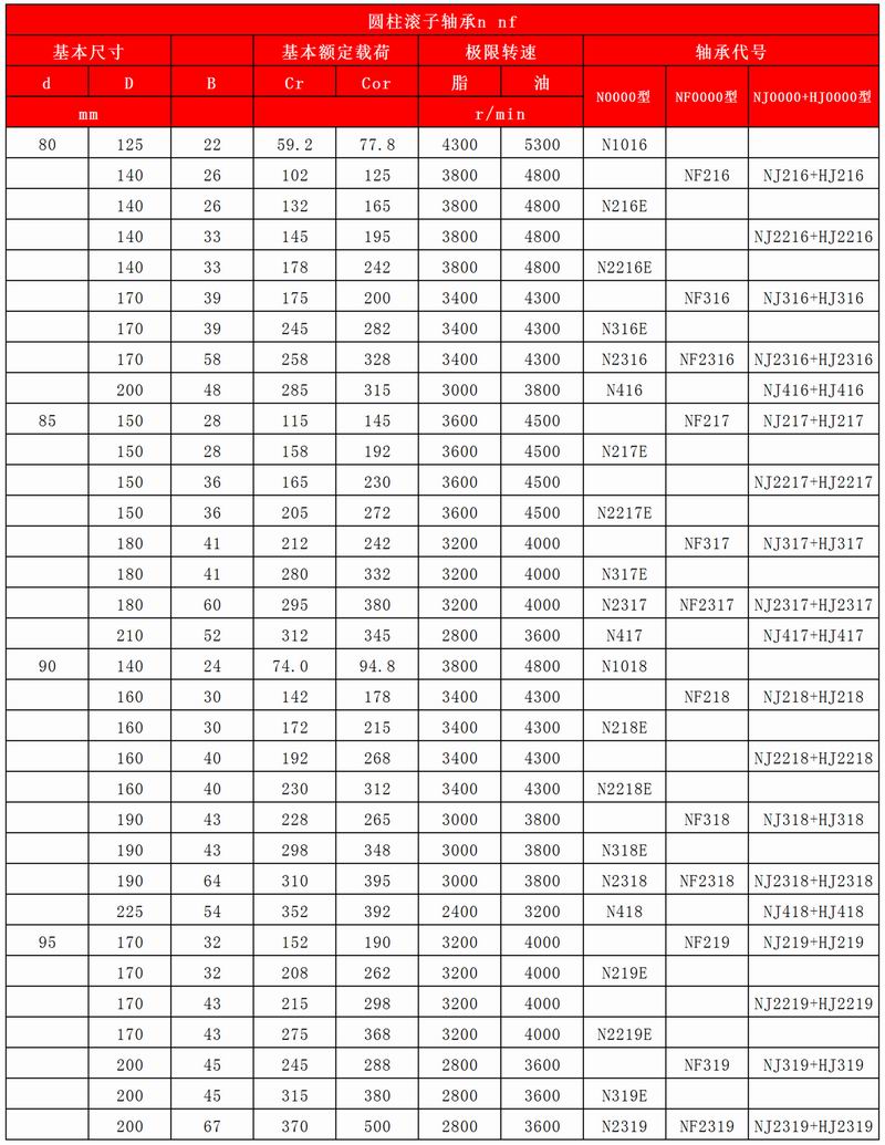 圓柱滾子軸承N NF (N0000型/NF0000型/NJ0000+HJ0000型)
